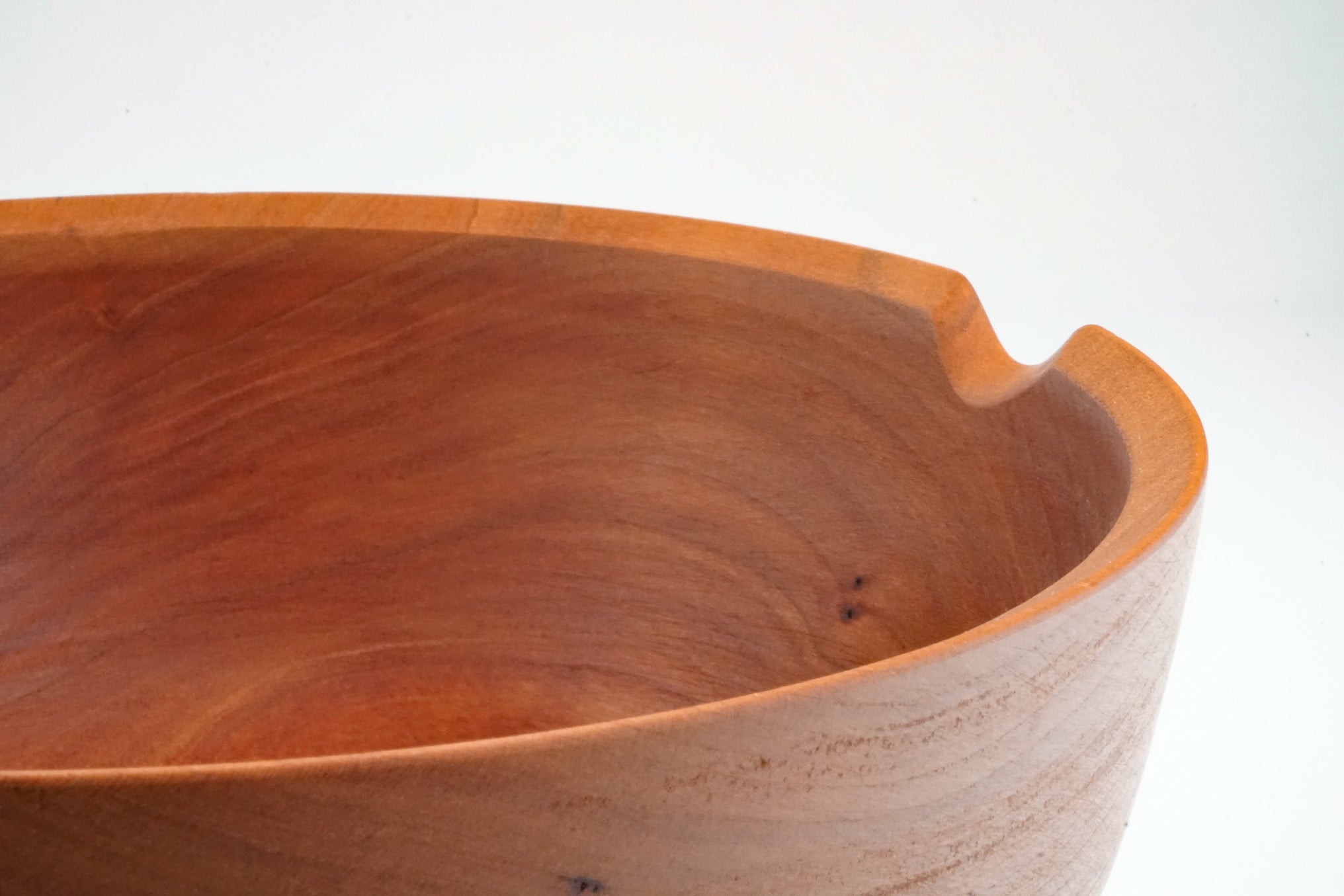 Shaped with lathe, chisels and wood knives. Finished with a natural food safe oil and beeswax blend.