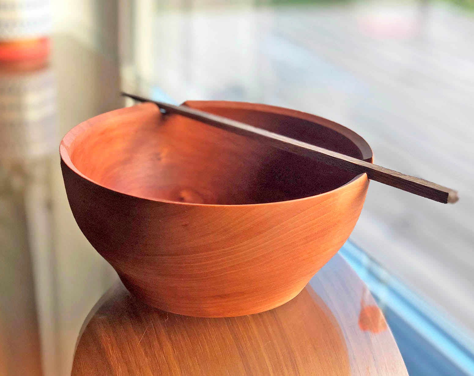 Cherry Wood Bowl With Chopsticks